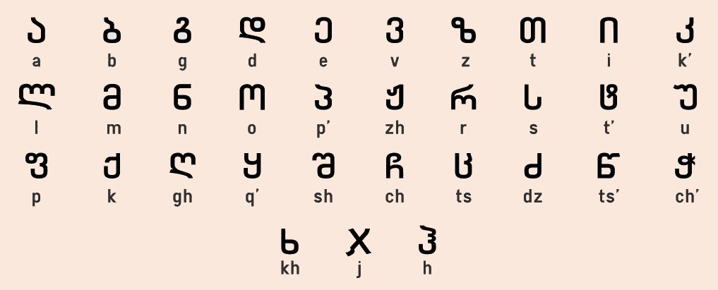 Nur Georgisch hat ein eigenes Alphabet, das ebenfalls ursprünglich auf dem griechischen Alphabet basiert: